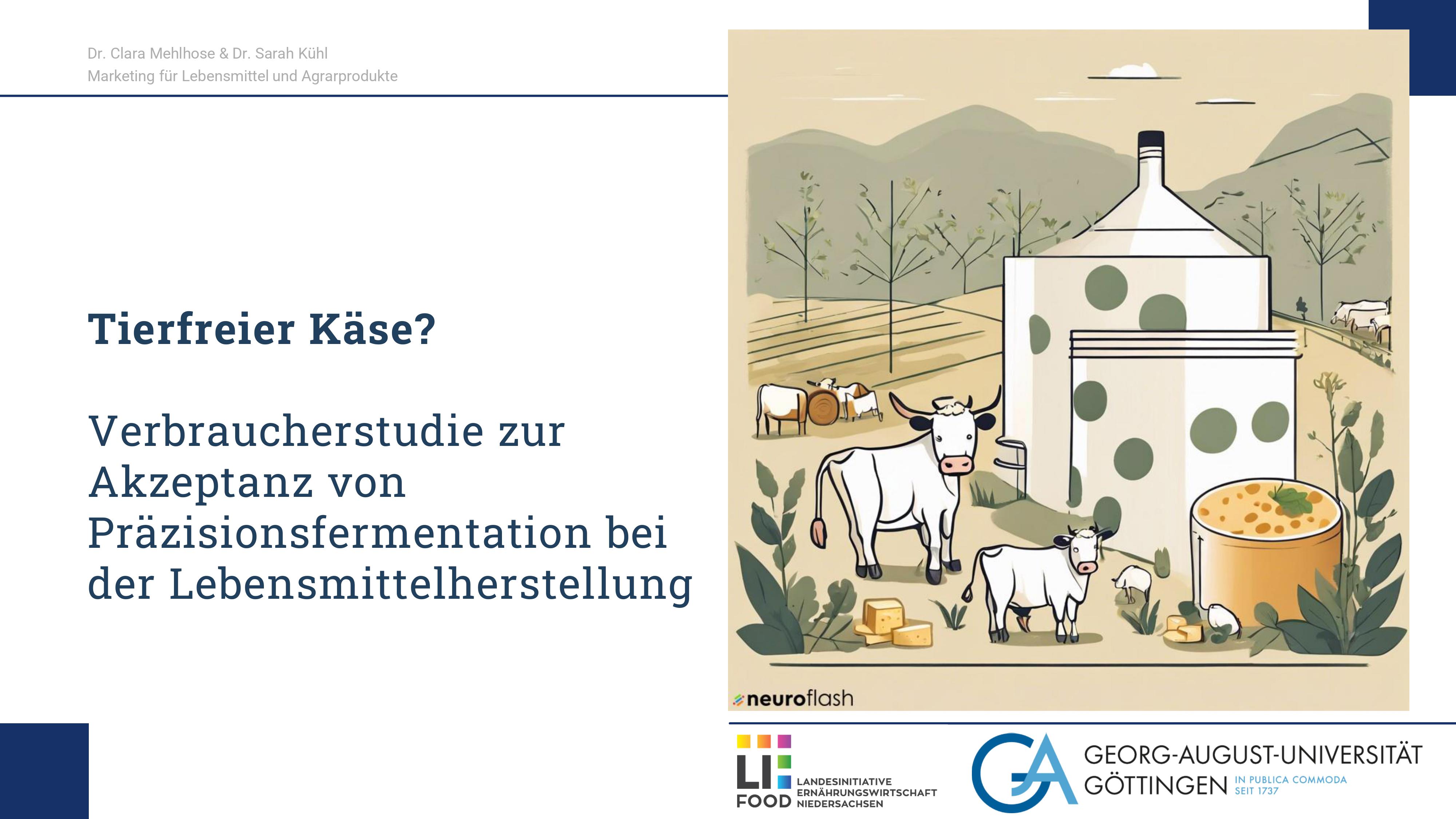 Die Studie befasst sich aber auch mit der Akzeptanz möglicher Alternativen zu traditionellem Käse. Hierzu wurden die Verbraucher*innen zu tierfreiem Käse befragt, der mit Hilfe von Präzisionsfermentation hergestellt wird. Diese Technologie ermöglicht es, die für Käse wichtigen Proteine ohne Milchkühe herzustellen. Dazu werden Mikroorganismen so angepasst, dass sie die entsprechenden Proteine in einer Nährflüssigkeit produzieren. Diese Herstellungsweise verspricht ein Käseprodukt, das herkömmlichem Käse geschmacklich gleich ist, aber tierfrei hergestellt wird. Damit unterscheidet sich dieser Käse auch von pflanzlichen Alternativen. Während die Verbraucher*innen sowohl Vorteile der Lebensmitteltechnologie erkennen als zum Teil auch Skepsis hegen, zeigen sie sich grundsätzlich offen für einen tierfrei hergestellten Käse. Studienautorin Dr. Clara Mehlhose erklärt: „Insbesondere jüngere Menschen und Liebhaber verschiedener Käsesorten stellen eine spannende Zielgruppe für solche Produkte dar. Mitautorin Dr. Sarah Kühl ergänzt: "Wer grundsätzlich offen für Innovationen ist und sich der negativen Auswirkungen der Milchviehhaltung bewusst ist, würde tierfreien Käse sogar regelmäßig kaufen".